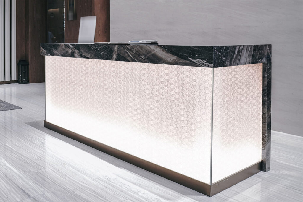 私たち浜新硝子は、家具の名産地大川にて家具用硝子の加工販売店として創業後、内装建材・照明機器用硝子を主とした板硝子加工品を全国へ販路を拡大。また、意匠ガラスを専門に取り扱う自社ブランド「STYLE GLASS」を展開し、ガラス×異素材による新たな空間づくりの可能性を提供しております。さらに、ガラス加工業により培った加工技術を応用し、総合加工メーカーとして石材製品やアルミ製品の加工もおこなっております。